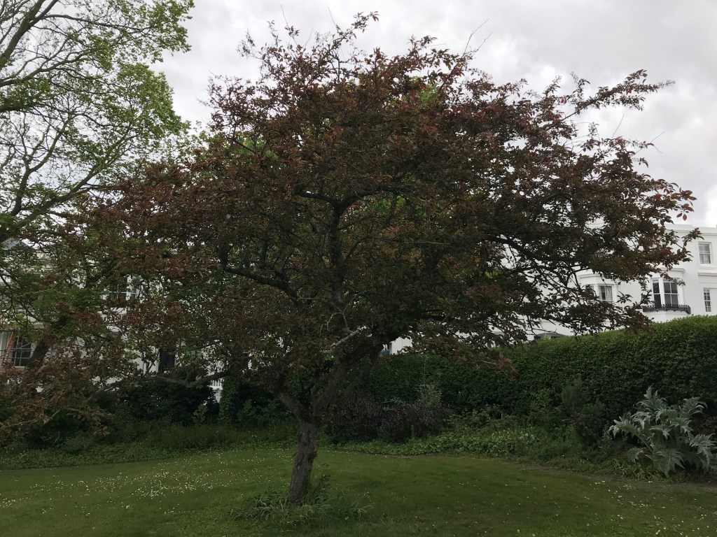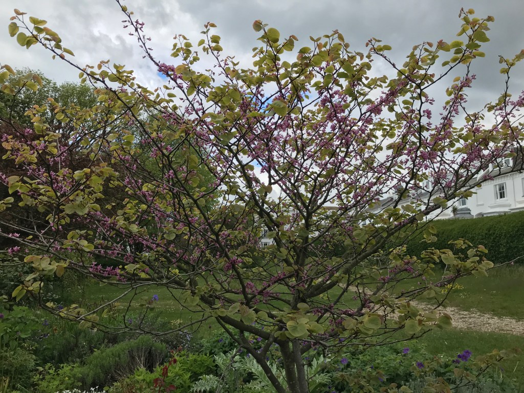 Same old trees – but, I realise, not the same year after year! The problem with sticking rigidly to an end-of-the-month schedule is that the weather gets in the way. May 2021 was cold, very wet and miserable here in SE UK. This meant that tree number one, which was spectacular in May last year, had all its blossom pelted off in a few days in week three this time. The winner for May is clearly tree number 4 – a young Judas tree with glorious colour, even on such a grey day. This month (June) my money is on tree number two – the mock orange. Fingers crossed – this is a very special tree for me.