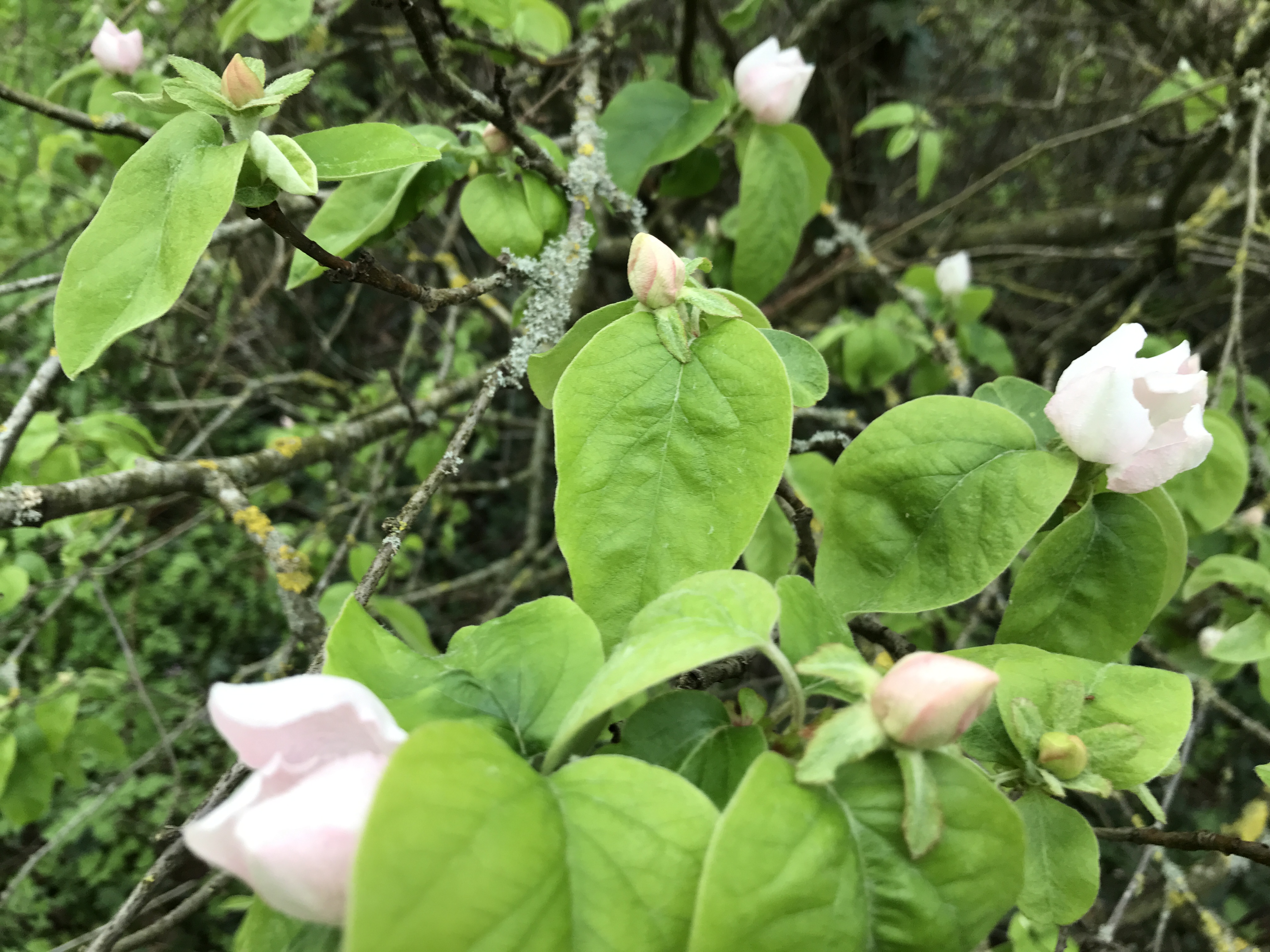 The blossom in the pictures (plum and quince) is somewhat misleading – absolutely no fruit this year, probably a late frost in May.