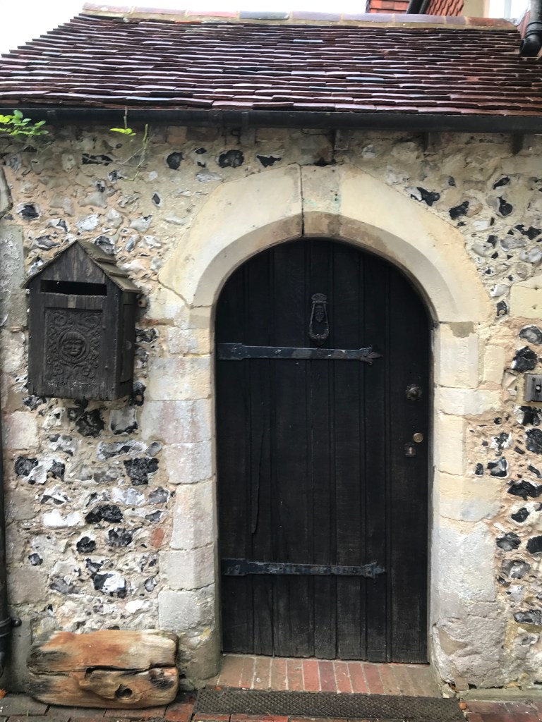 She lives in an interesting house, too. I especially love that heavy external door and the face on the letter box. The house is old – there is part of an Elizabethan staircase and a beautiful window in the (seriously spooky) bat filled attic that is reputed to have come from Lewes Priory, presumably at the dissolution in 1536.