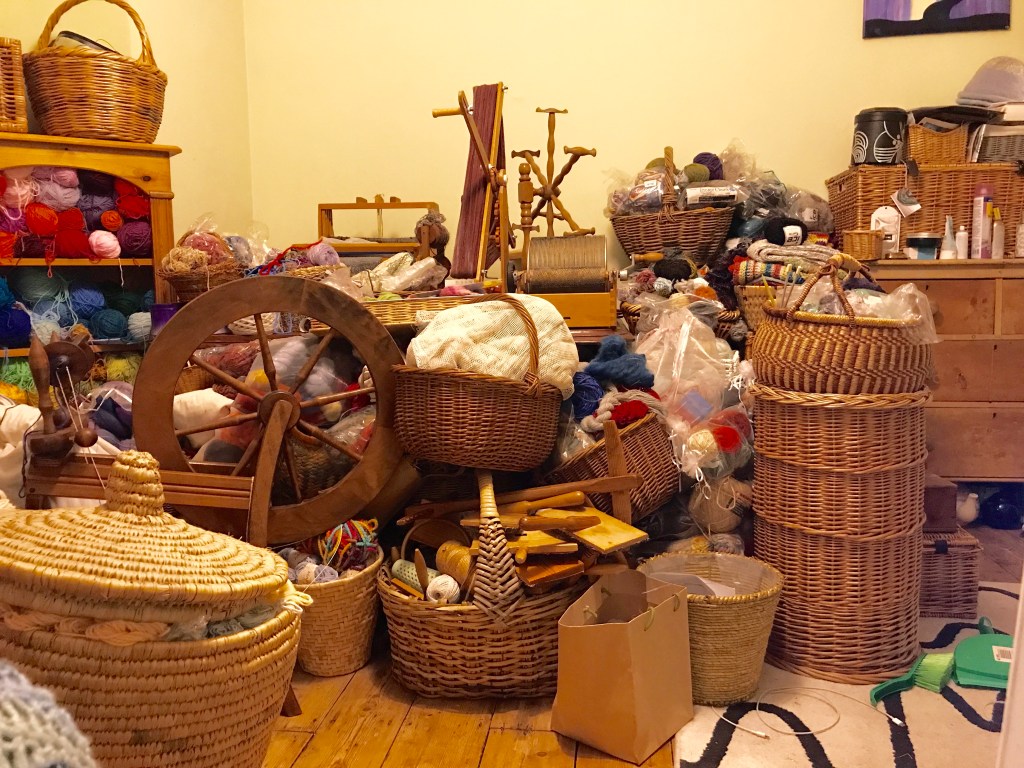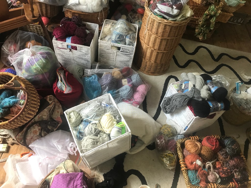 Trying to squash 4 or 5 rooms into one. Not that interesting – but suddenly SO hard to resist distractions when long unseen yarn treasures emerge once more….