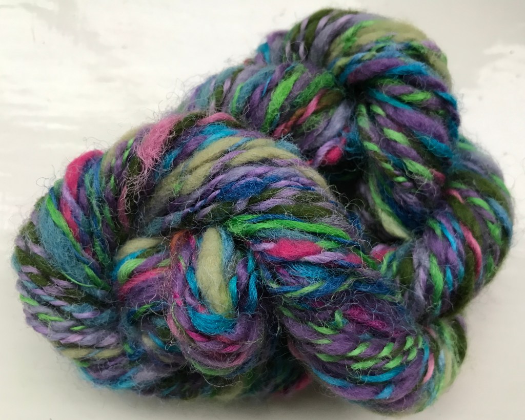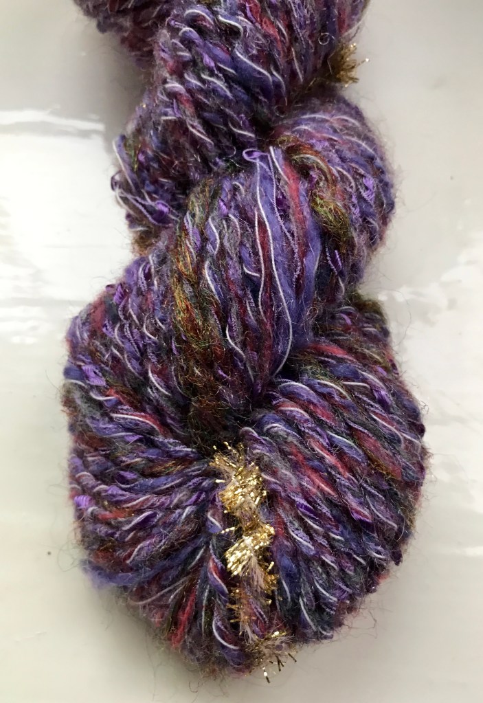 Maybe some classic, fine, even spun laceweight for a change? Or bluefaced Leicester plied with that gleamimg silk….?