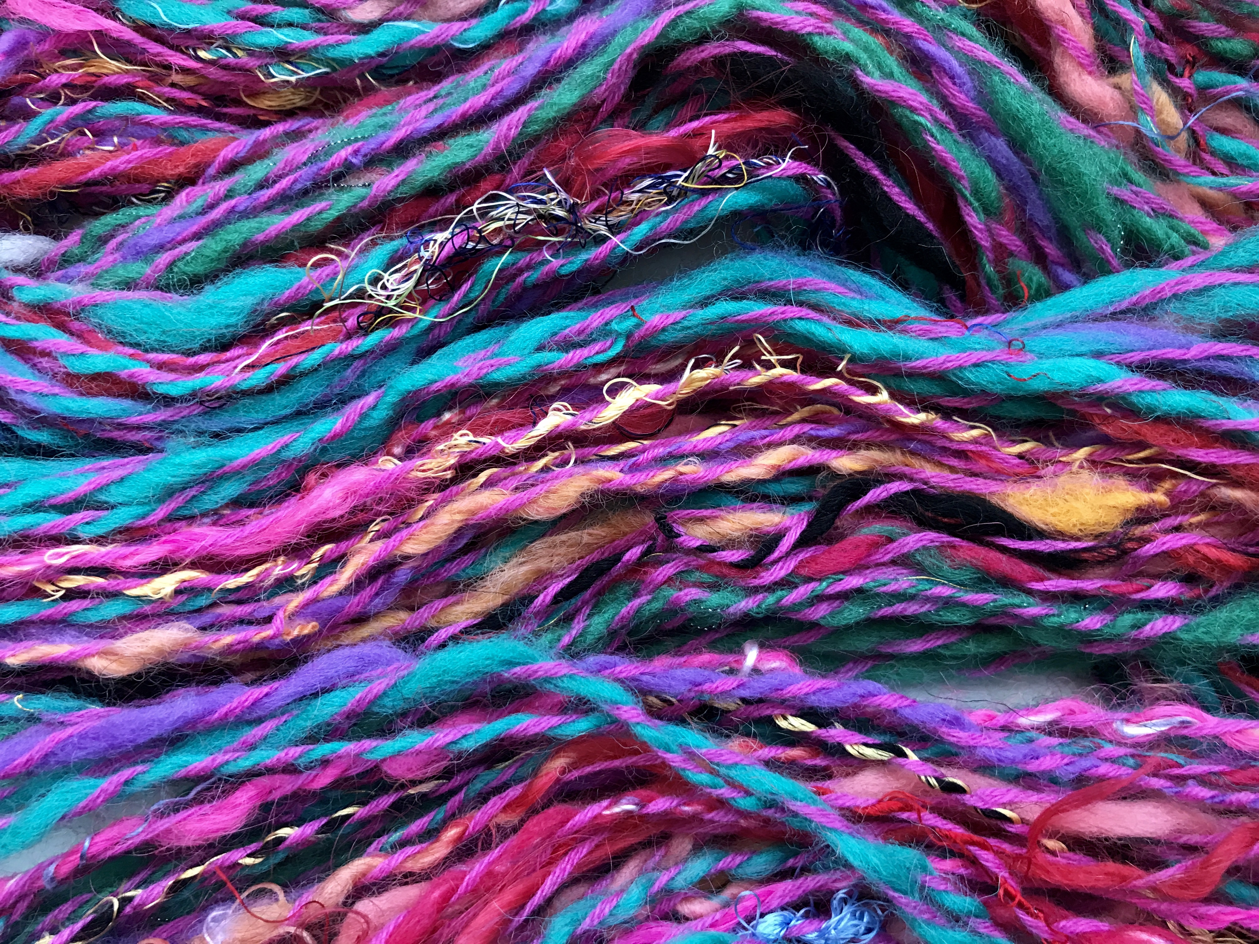 Moving swiftly on. Some intimations of spring, for sure – violets, daffodils and even tulips getting going in the gardens opposite. And – at last – a bit of time for spinning again. I have a lot of plans for this. But first, finishing off some fractal spun art yarns that have been cluttering up my wheels for some weeks now. Feels good to have caught up – and I know of at least one person who will be glad to get some of it into a weaving project! The rest are heading for my Etsy shop.