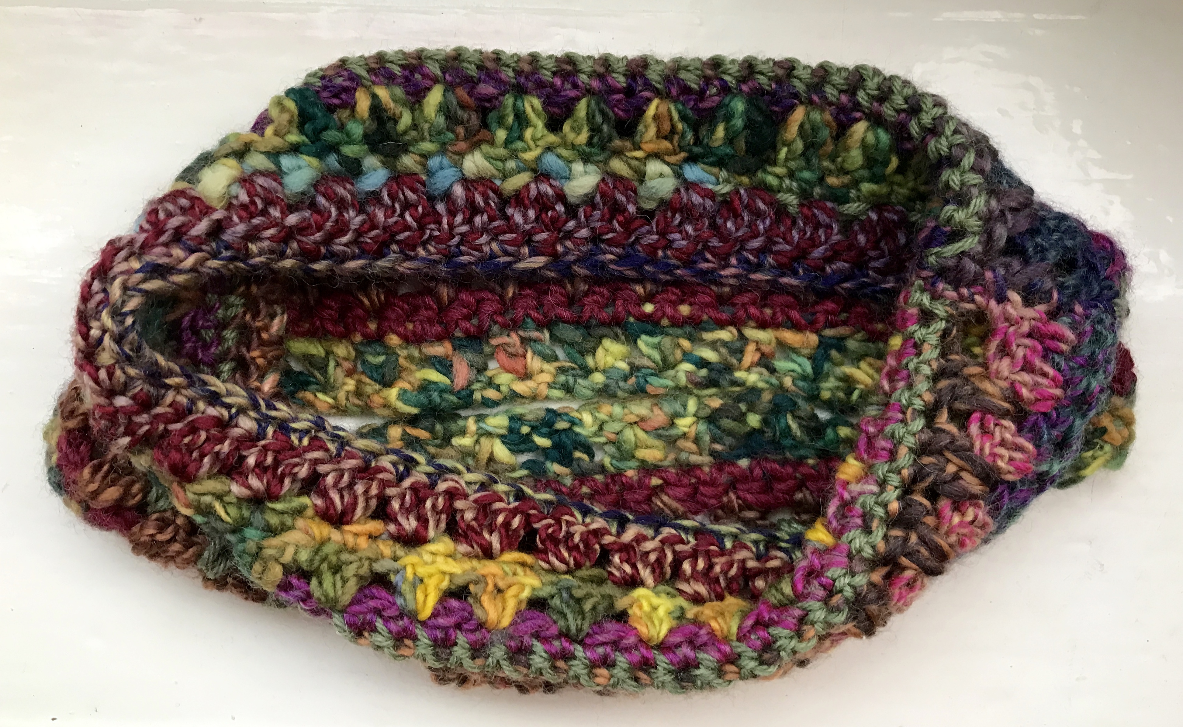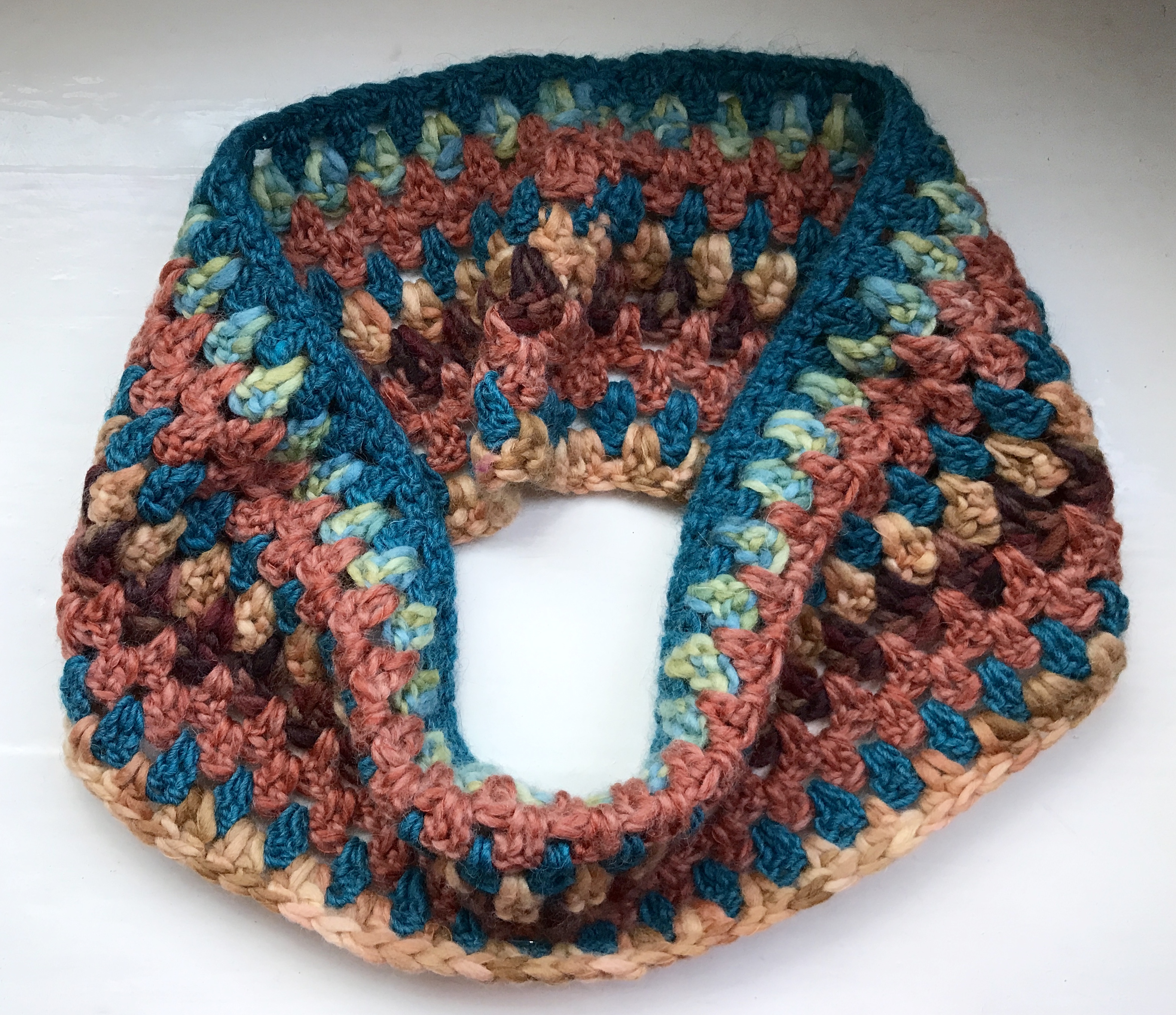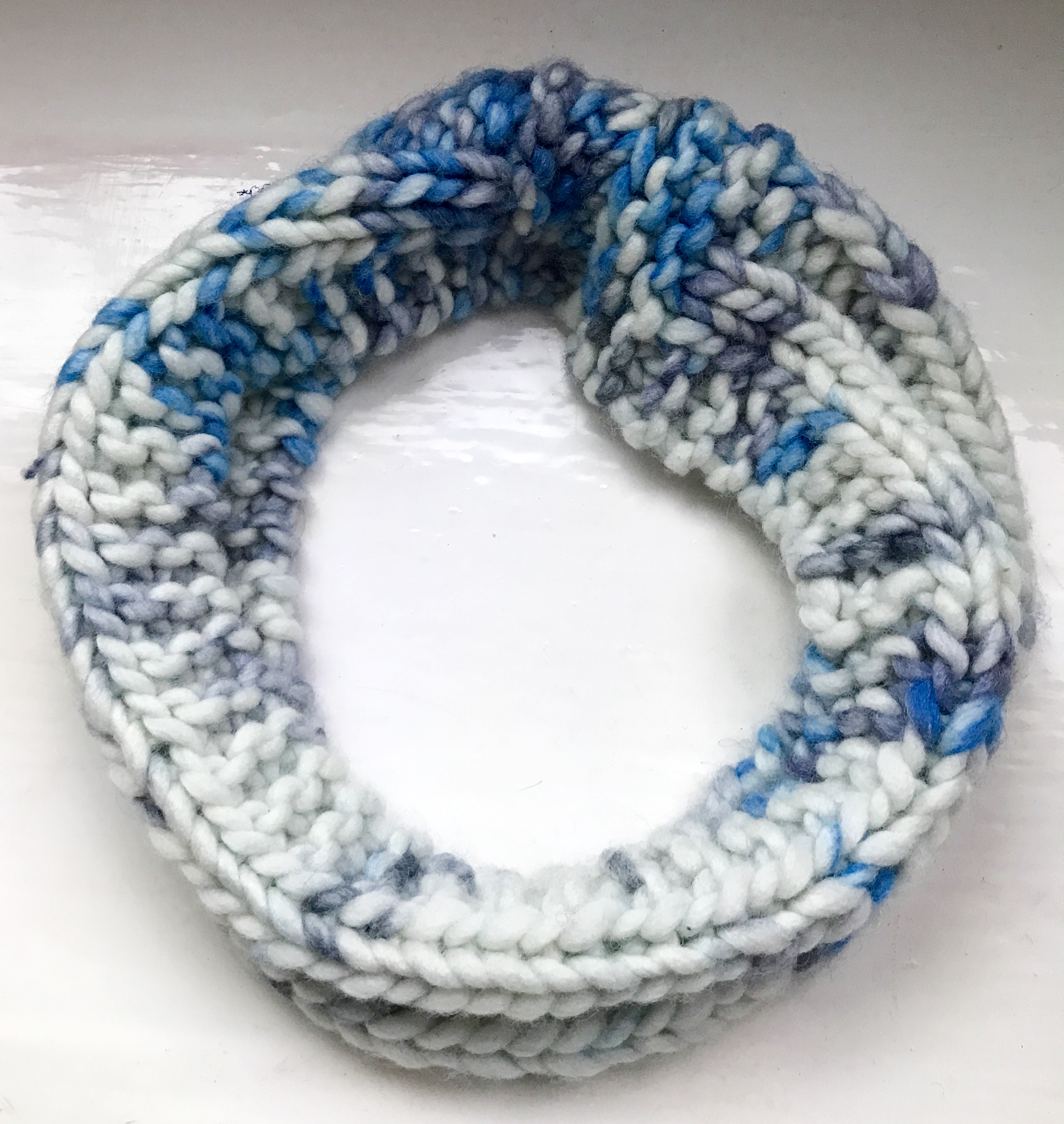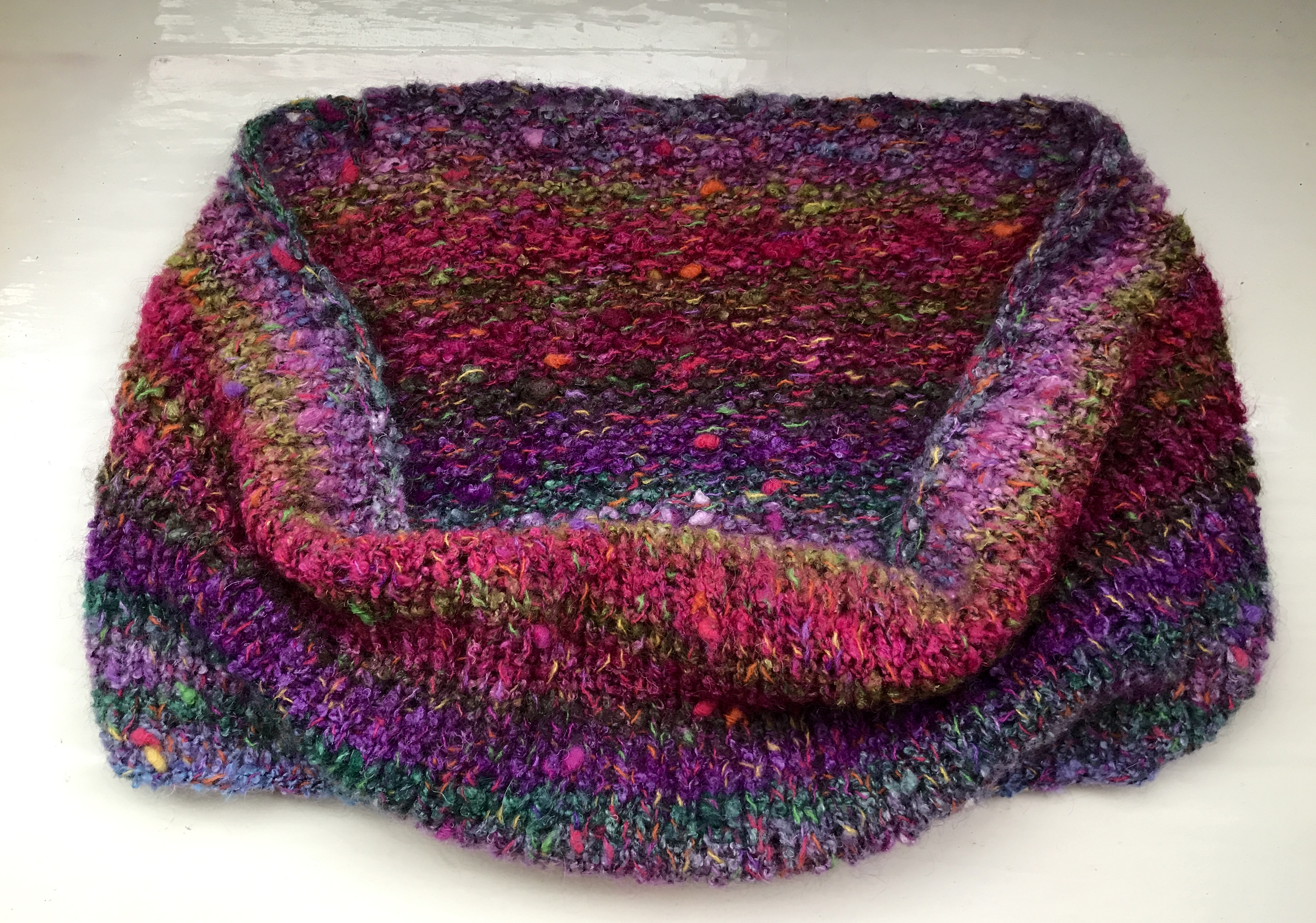 I have been making lots this winter – great fun! I have even produced kits. And on Etsy they sell – to the USA and to Europe. But not so much here, in the UK. This I really don’t understand. Cowls (neck warmers, snoods in the States) are warm, super practical (stuff one in your pocket, plus no tails to get in the way, especially good for outdoor sports). They are also obviously less expensive than the time consuming hand made traditional long scarf. So why are they not catching on? Are we just being a bit slow?