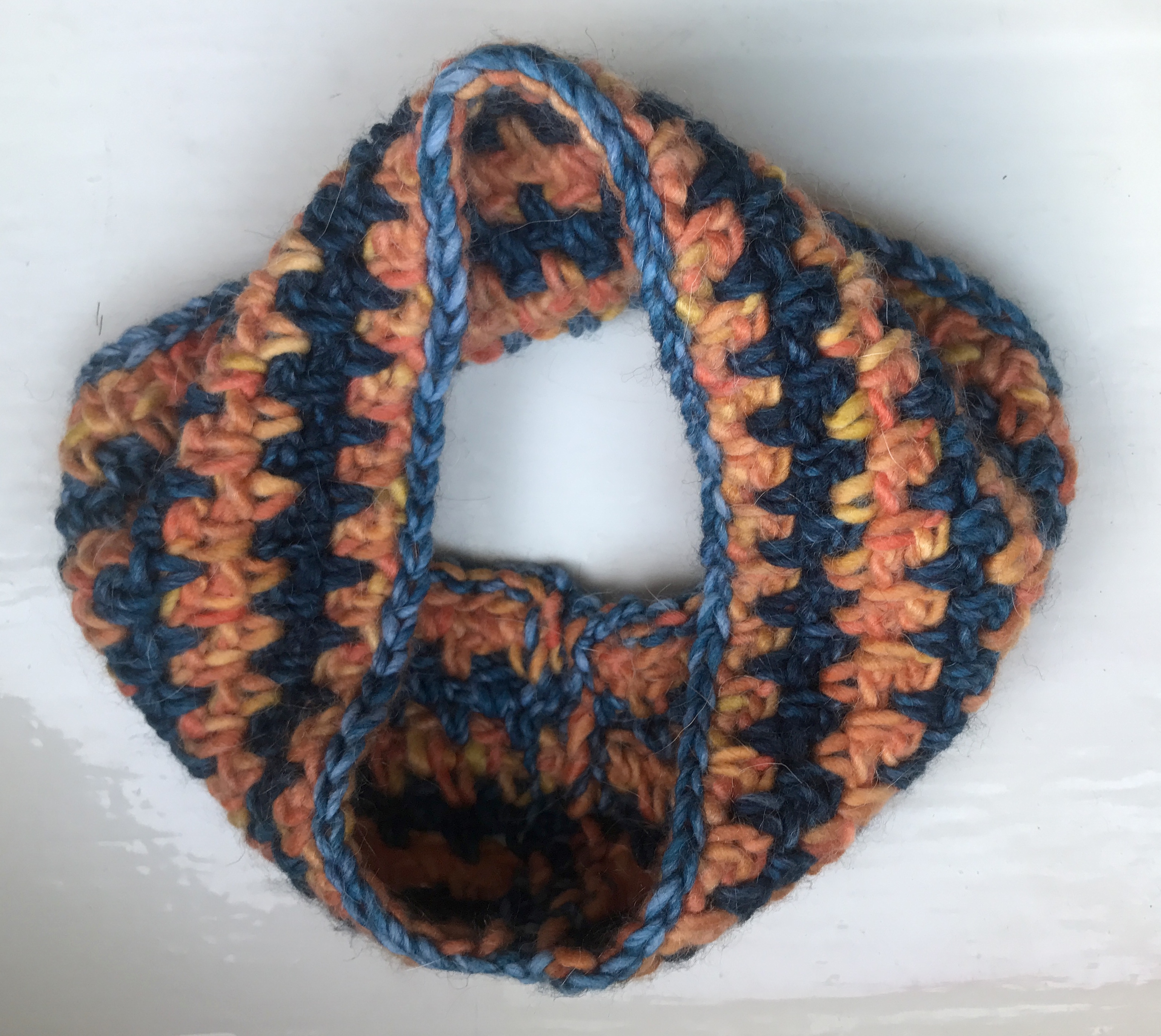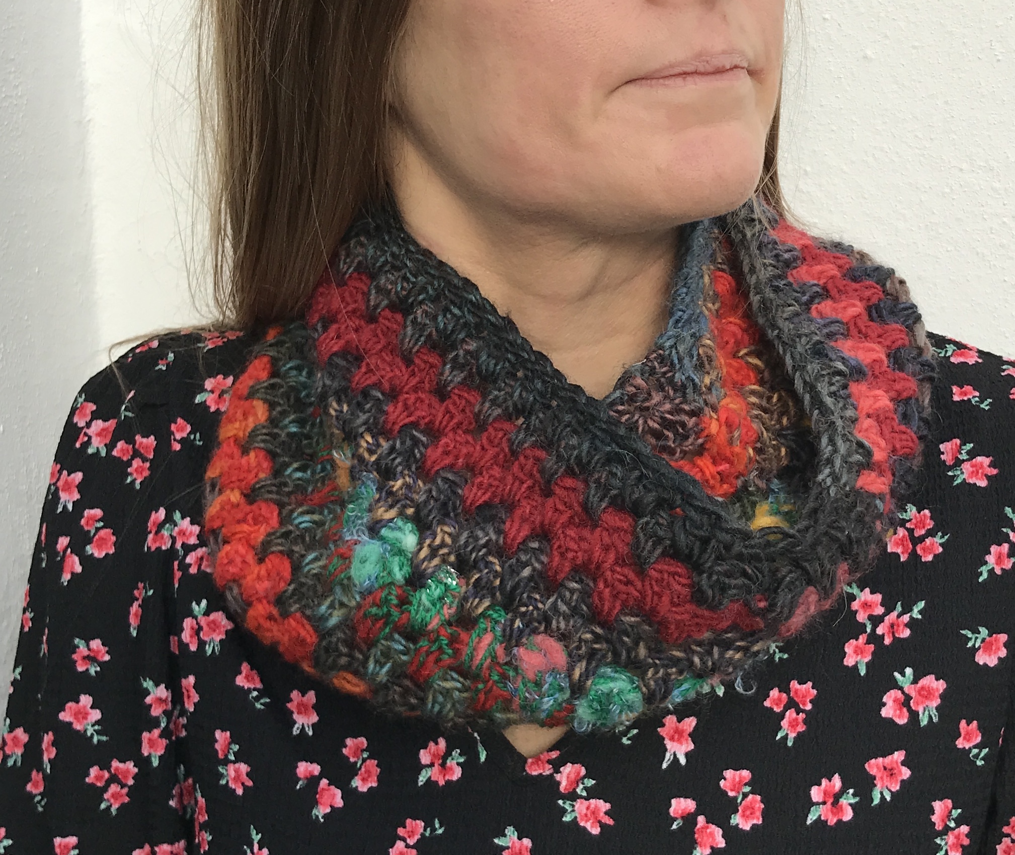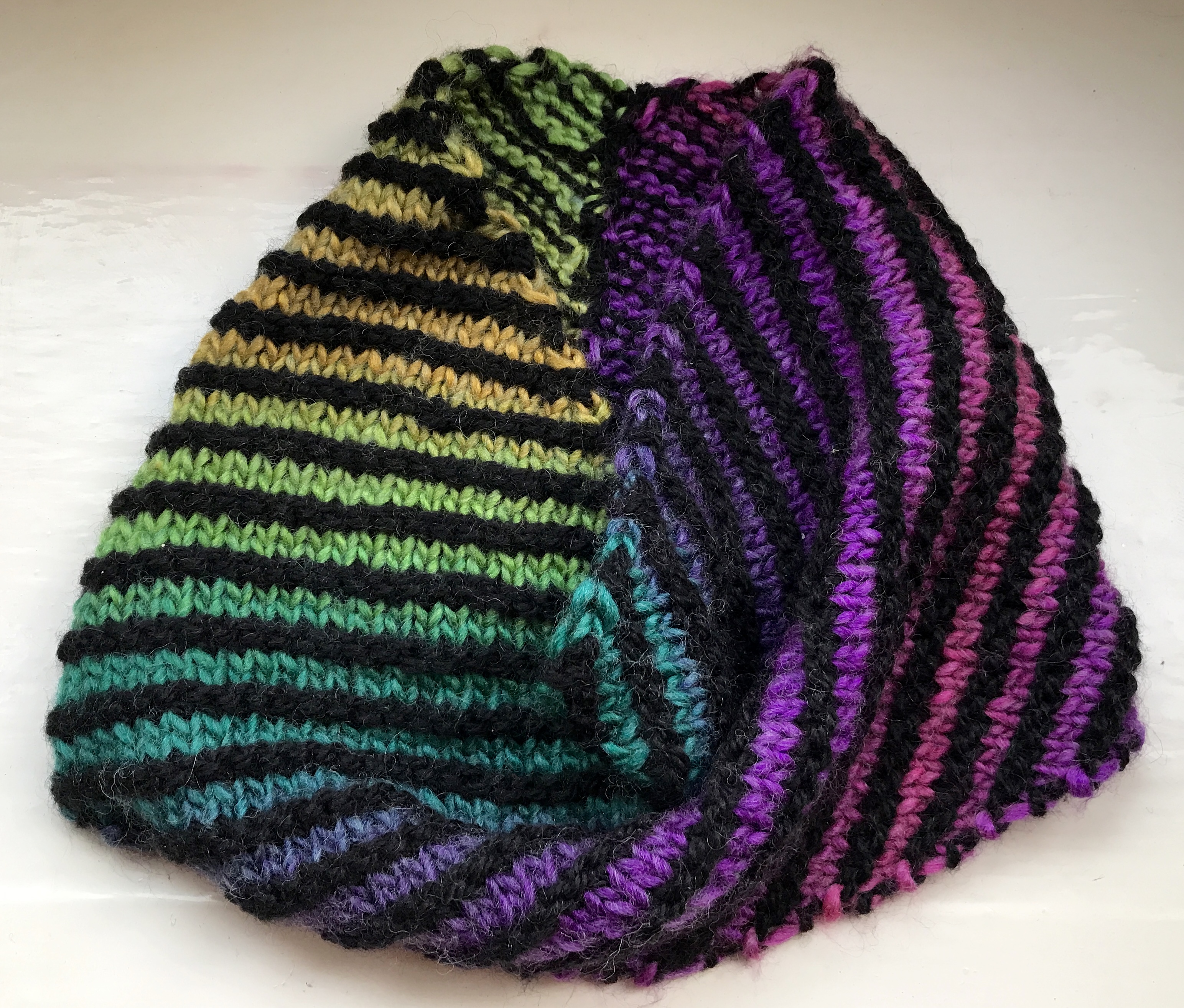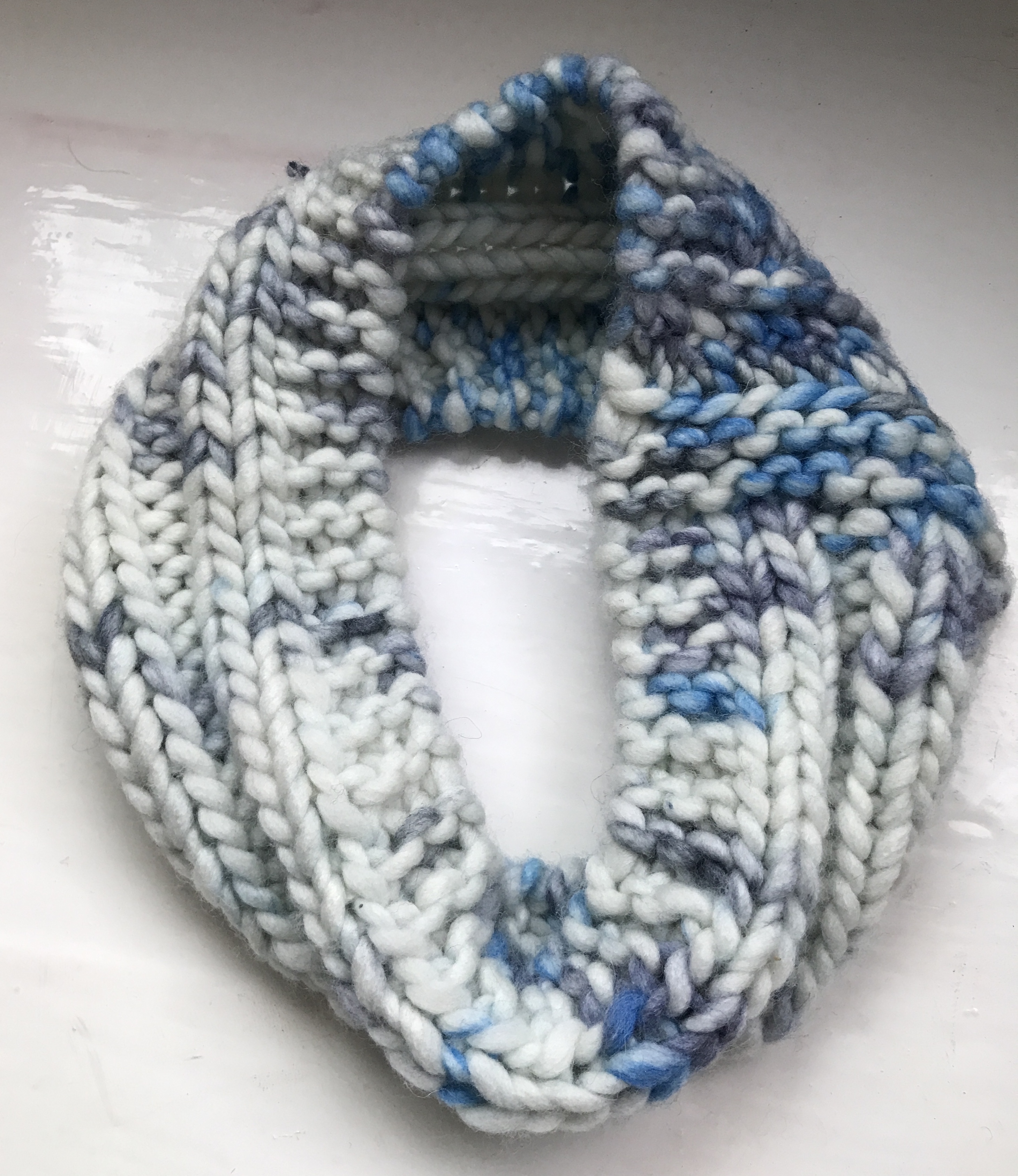 I have been making lots this winter – great fun! I have even produced kits. And on Etsy they sell – to the USA and to Europe. But not so much here, in the UK. This I really don’t understand. Cowls (neck warmers, snoods in the States) are warm, super practical (stuff one in your pocket, plus no tails to get in the way, especially good for outdoor sports). They are also obviously less expensive than the time consuming hand made traditional long scarf. So why are they not catching on? Are we just being a bit slow?