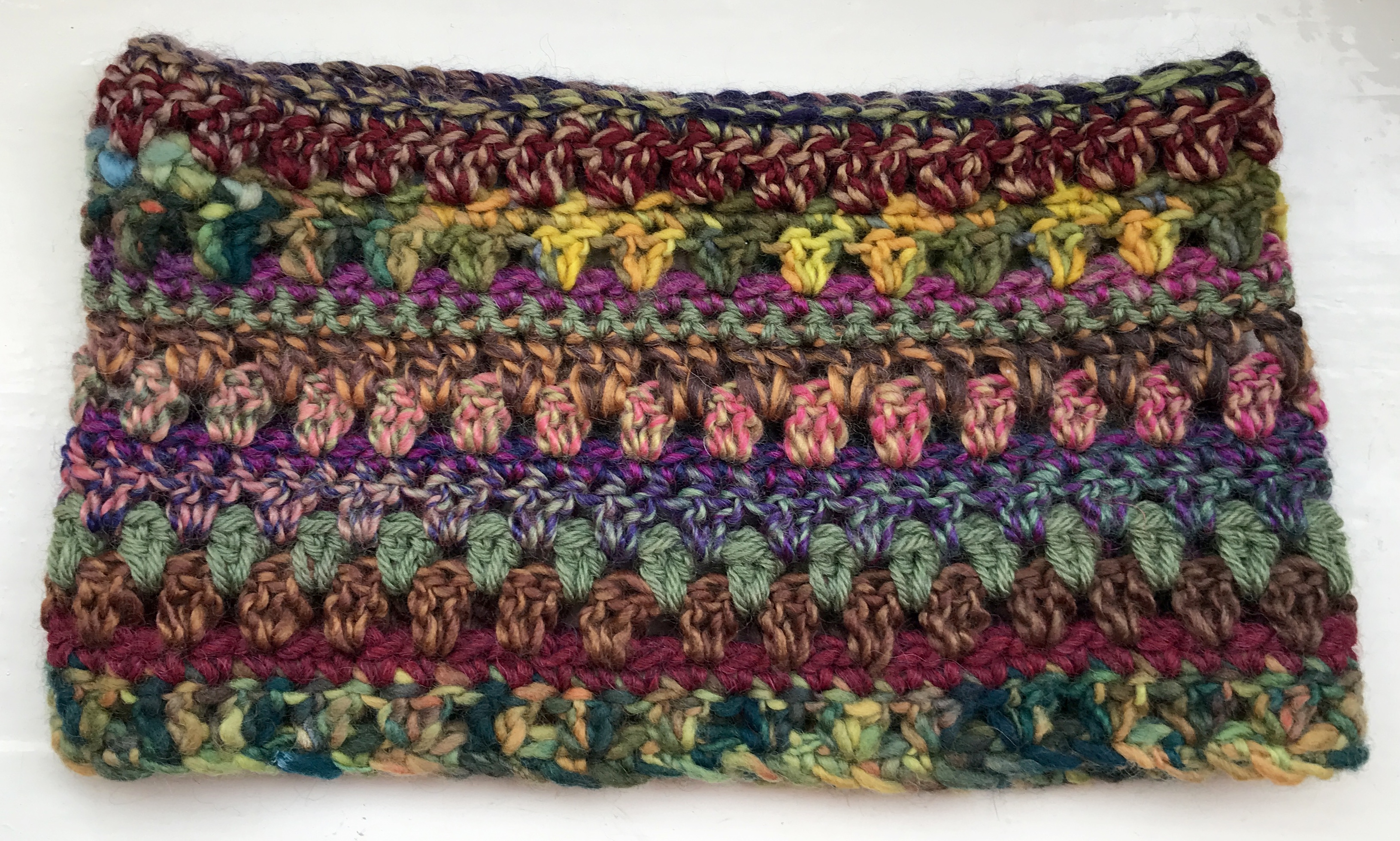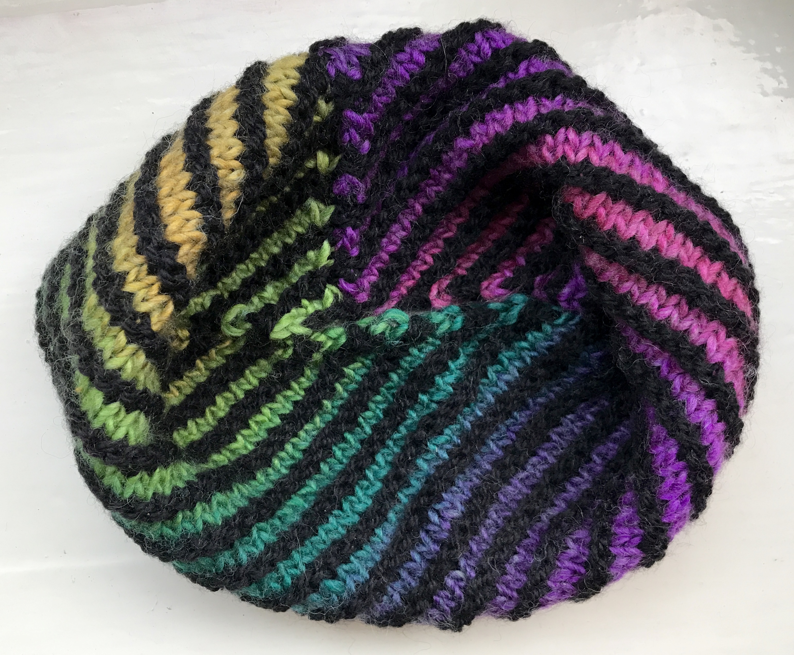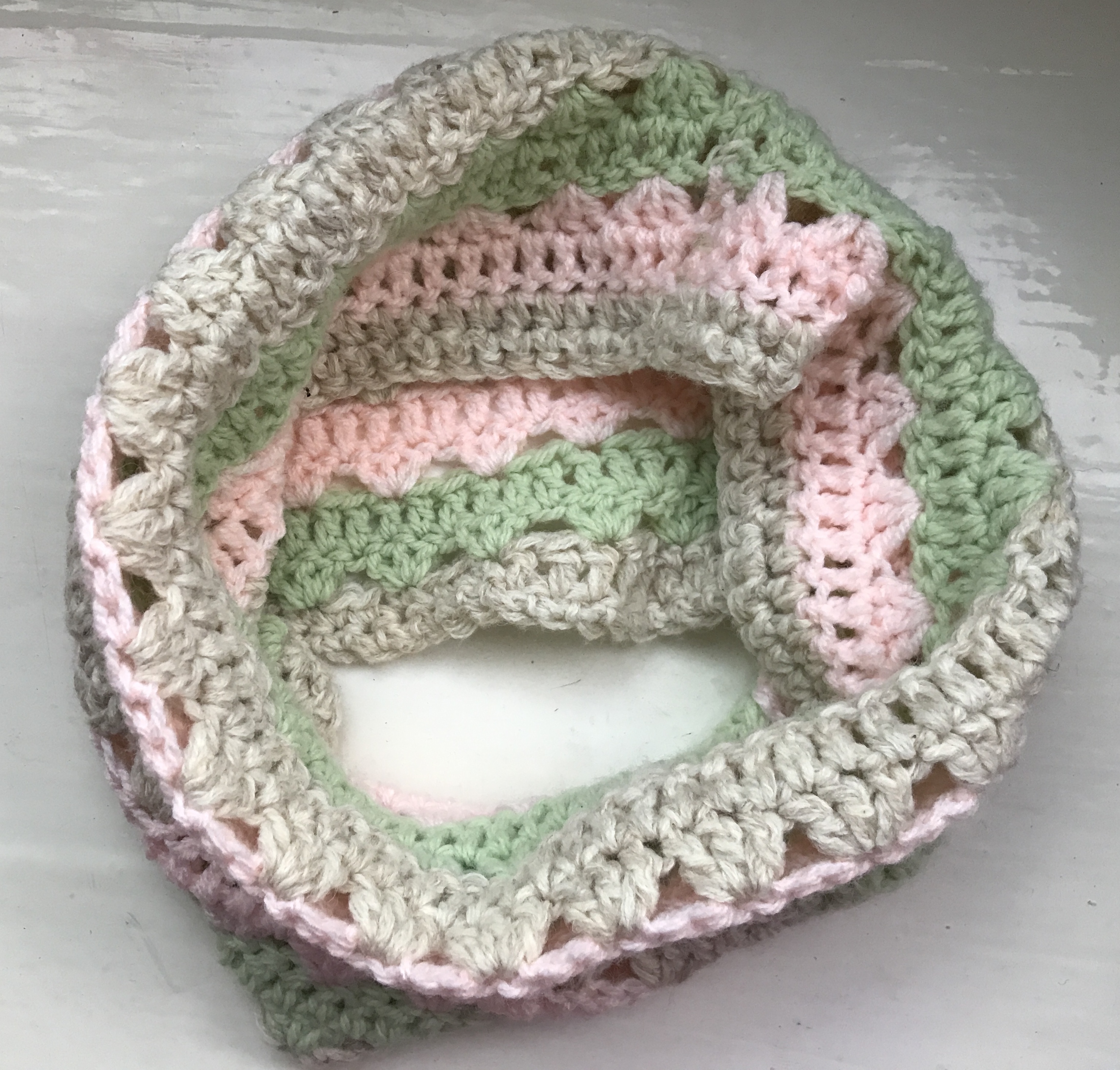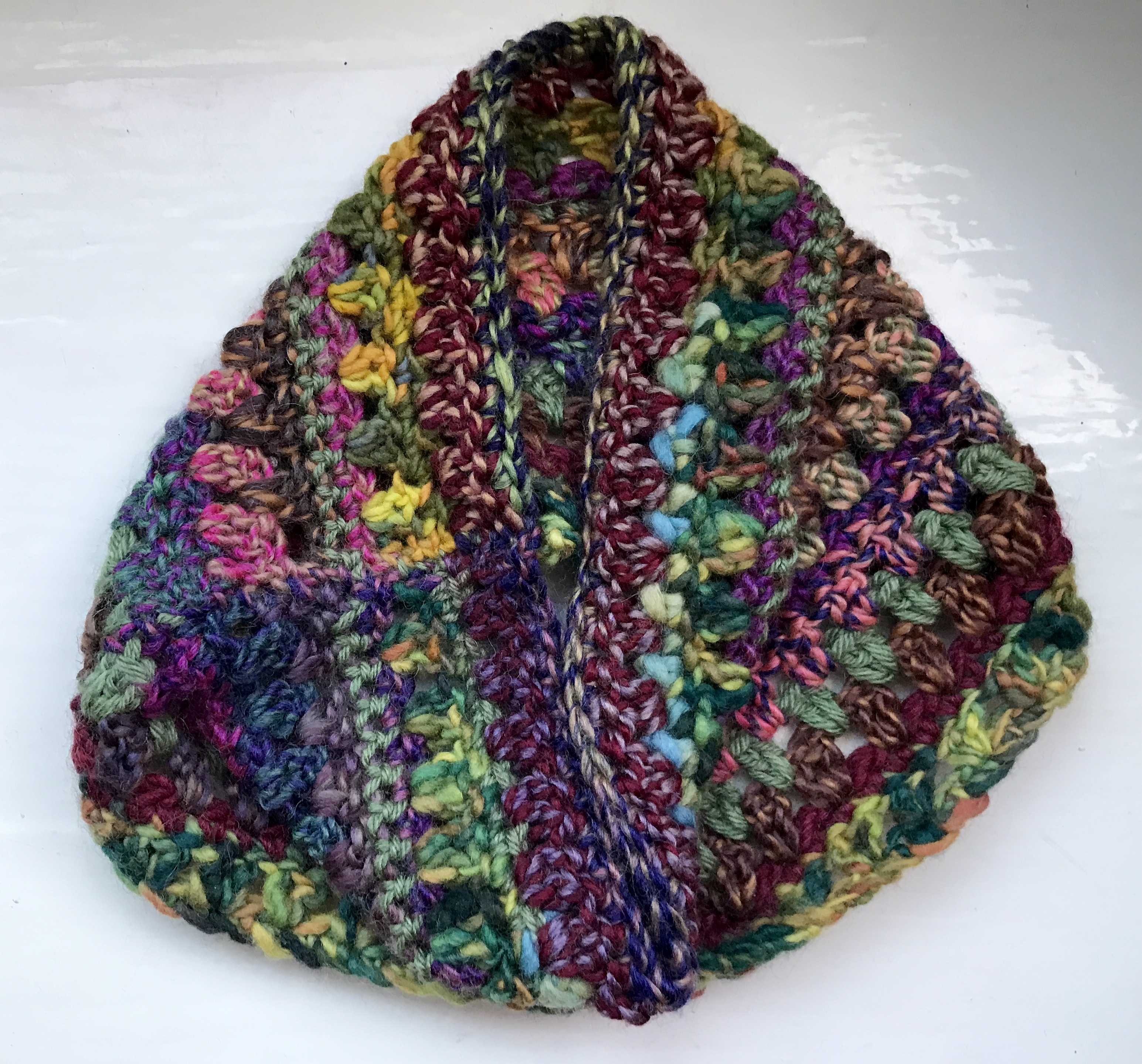 I have been making lots this winter – great fun! I have even produced kits. And on Etsy they sell – to the USA and to Europe. But not so much here, in the UK. This I really don’t understand. Cowls (neck warmers, snoods in the States) are warm, super practical (stuff one in your pocket, plus no tails to get in the way, especially good for outdoor sports). They are also obviously less expensive than the time consuming hand made traditional long scarf. So why are they not catching on? Are we just being a bit slow?